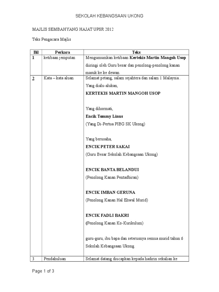 Syukur dalam agama islam mempunyai peranan yang penting dalam mengatur tindakan yang berangkat dari hati. Juga sesuai diubahsuai untuk program sambutan lain dan juga peringkat daerah serta kebangsaan. Apabila diumumkan ketibaan para tetamu jemputan. Use the download button below or simple online reader. Bagi memastikan majlis berjalan dengan lancar, hadirin diingatkan agar mematikan atau memastikan telefon bimbit berada dalam pengaturcaraan senyap.